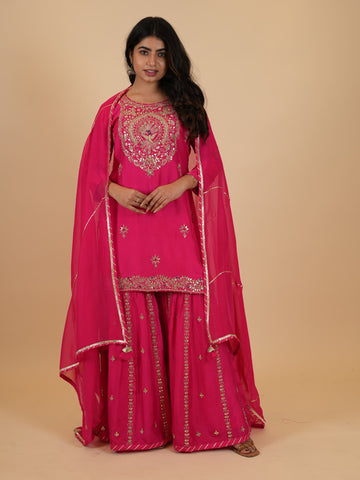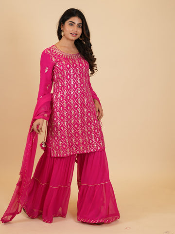Elevate your party and wedding attire with our Ranas Rani Color Gota Patti Work Sharara...