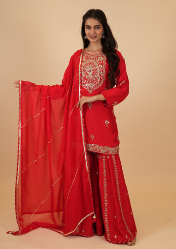 This Ranas Red color Designer Sharara set is a stunning choice for any special occasion....