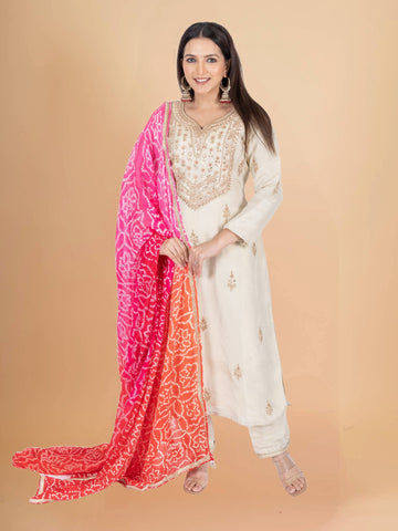 Add an air of elegance to your wardrobe with Ranas Designer Zardosi Work Suit. This...
