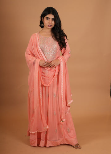 Introducing the Ranas Peach color Anarkali Suit, a stunning two piece ensemble made from luxurious...