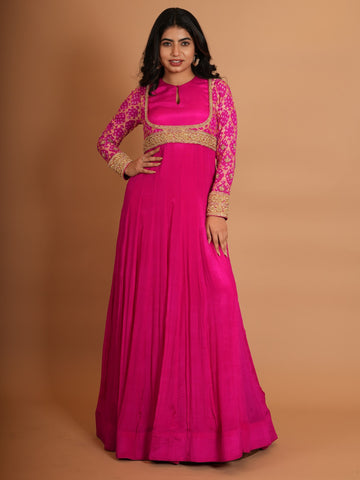 "Make a statement with our Ranas Rani Color Zardosi work Gown - a stunning party...