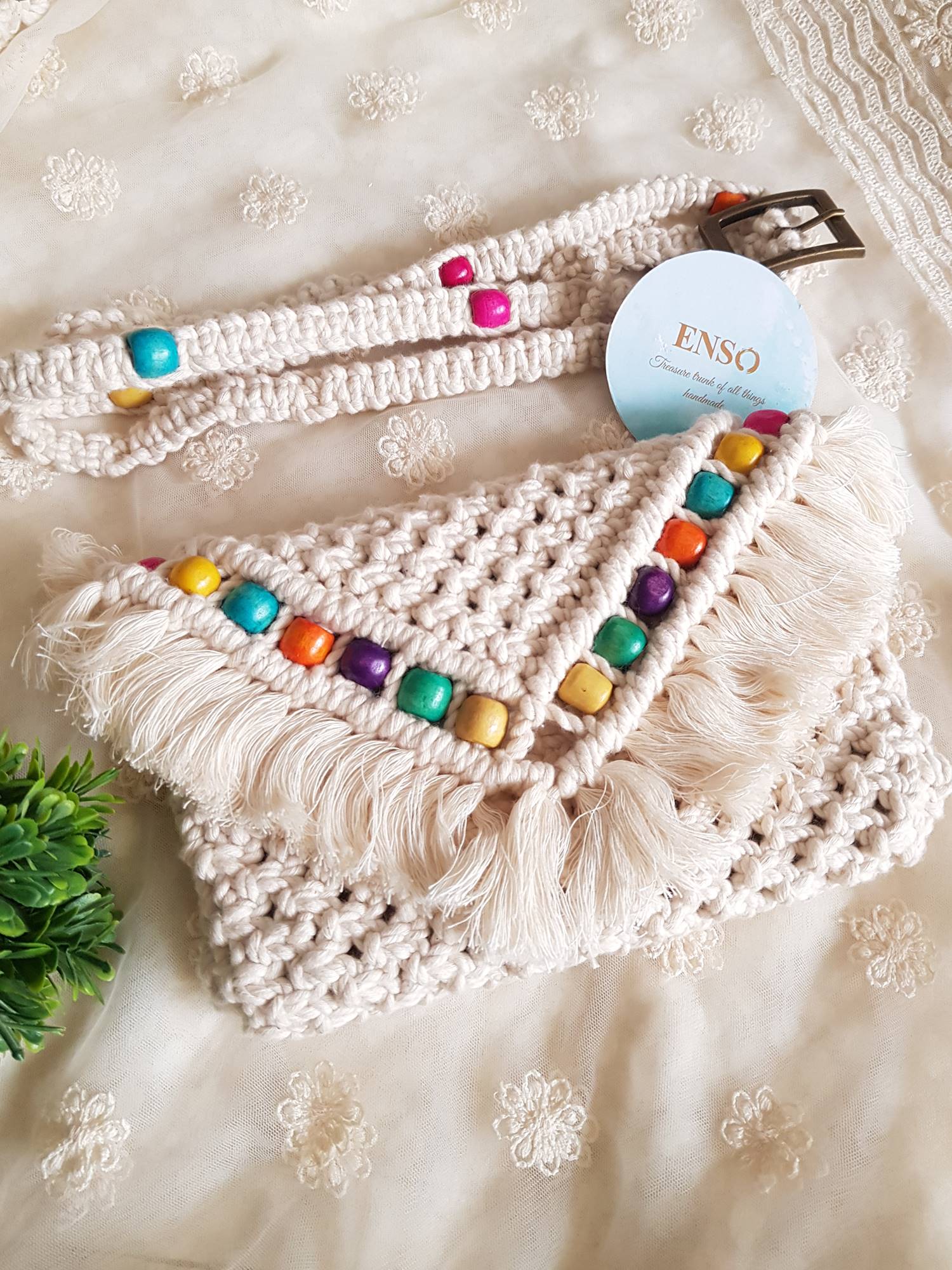 Expertly crafted with high-quality cotton yarn, the Enso 3 in 1 Waist Bag offers versatility and style. Use it as a waist bag, clutch bag, or sling bag, making it the perfect choice for any occasion. The sleek ivory color adds a touch of elegance to any outfit.