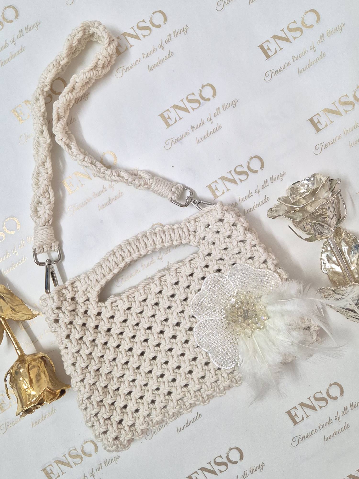 Expertly crafted with cotton yarn fabric, the Enso Handmade Shoulder Bag is a must-have for everyday use. Its sleek ivory color adds a touch of style to any outfit, and its spacious design allows for easy storage of essentials. Stay organized and fashionable with this versatile and durable bag.