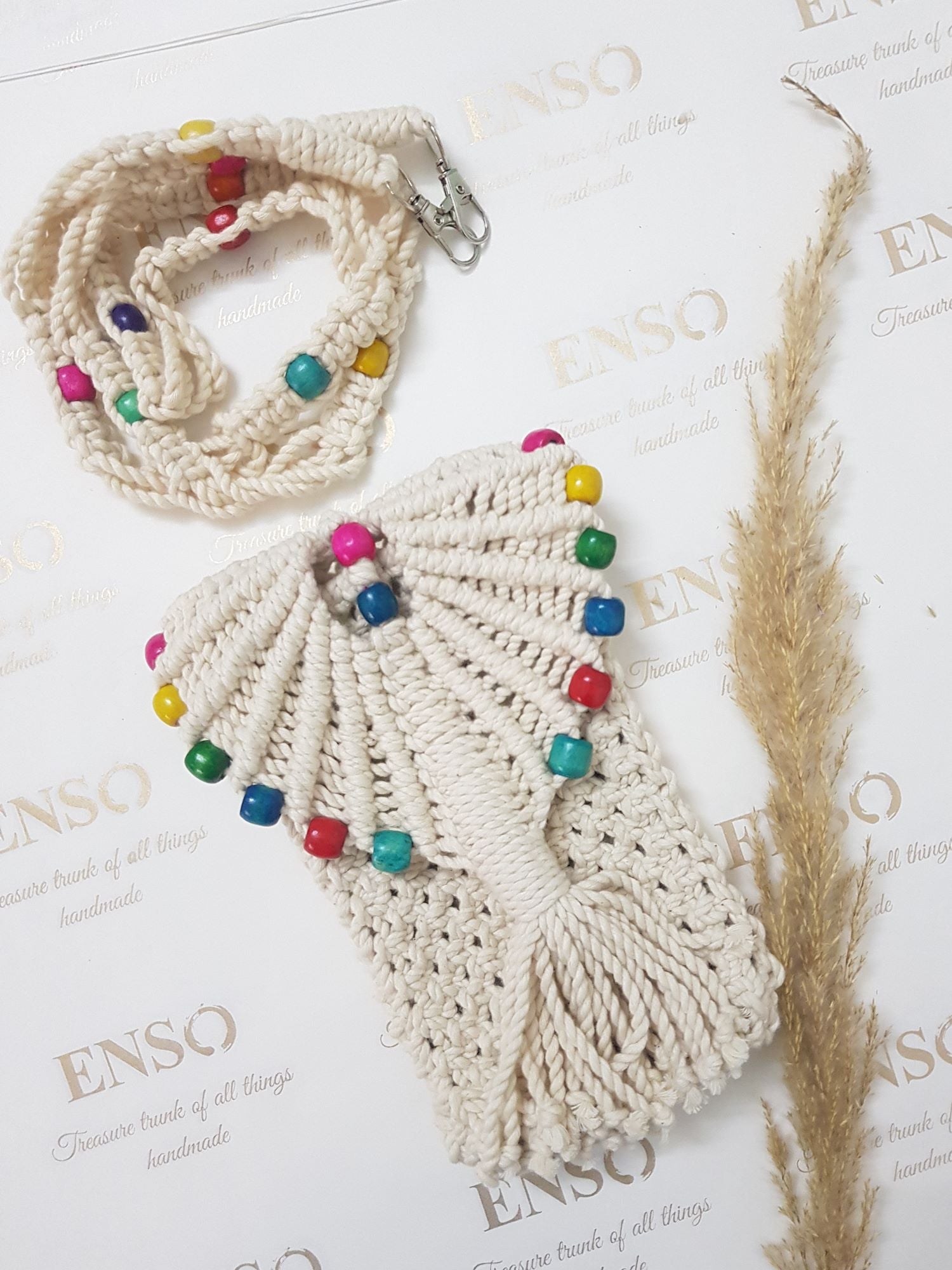 This handmade sling bag, in an elegant ivory color, adds a touch of style to any outfit. Made with cotton yarn and macrame technique, it is both fashionable and durable. The perfect accessory for any occasion, this sling bag is a great addition to any wardrobe.