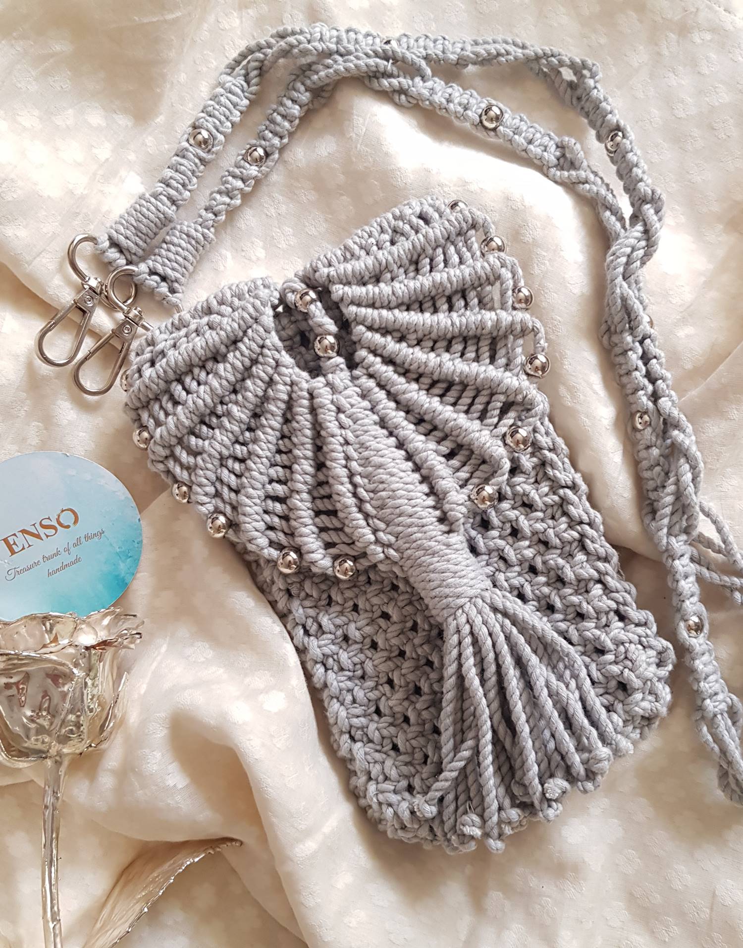 This Enso Handmade Sling Bag is the perfect accessory for day trips and shopping. Made with high-quality grey cotton yarn, it's ideal for carrying your essentials such as mobile devices, sunscreen, and sunglasses. Handcrafted with care, this bag is durable and stylish.
