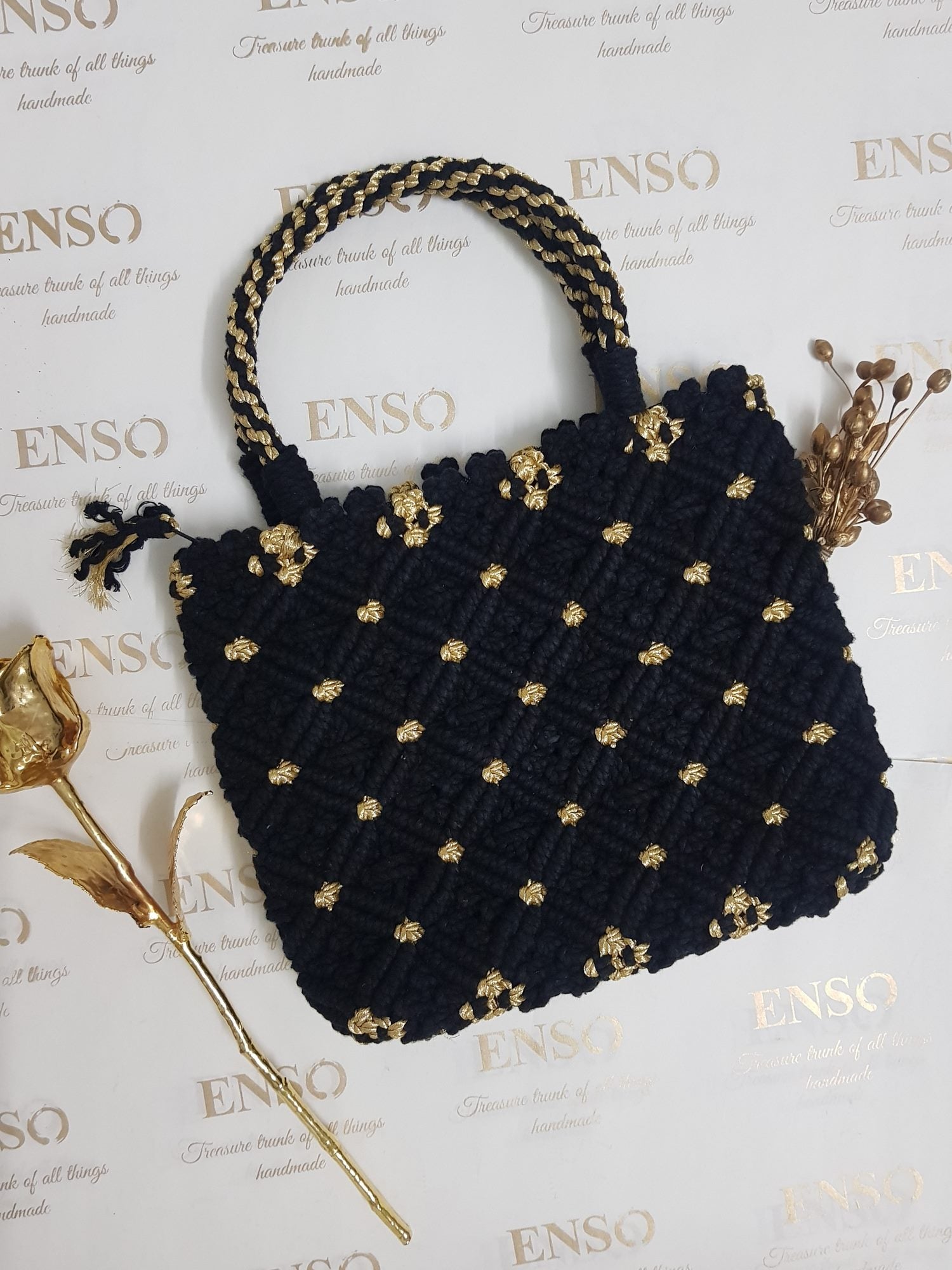 Color : Black & Gold Fabric : Cotton Yarn Work : Macrame |