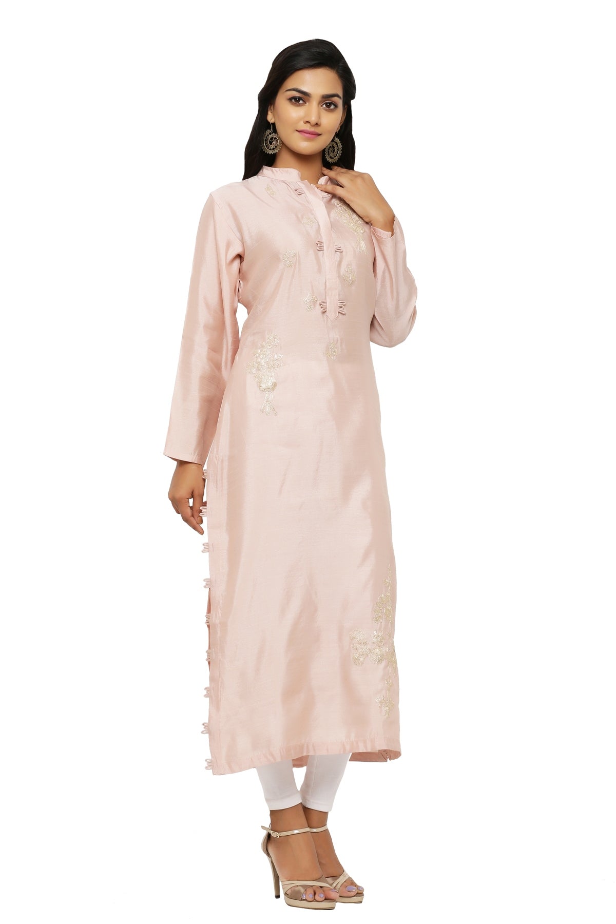 Do not store garments with zari weaving or embroidery in plastics , plastics react with zari and turn the zari dark.