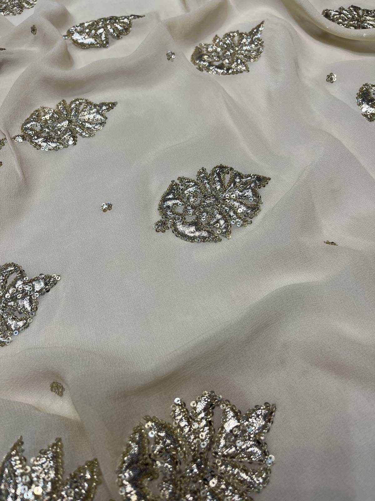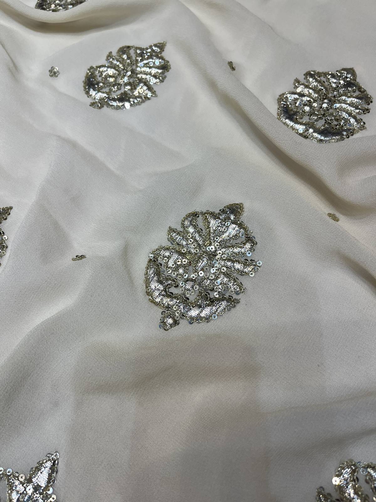 Enhance your look with our Ranas Beige Sequine Work Saree. Made from high-quality Georgette fabric, this trendy saree is perfect for all occasions. The intricate sequin work adds a touch of elegance to every outfit. Comes with blouse fabric for a complete and stylish ensemble. Elevate your style today.
