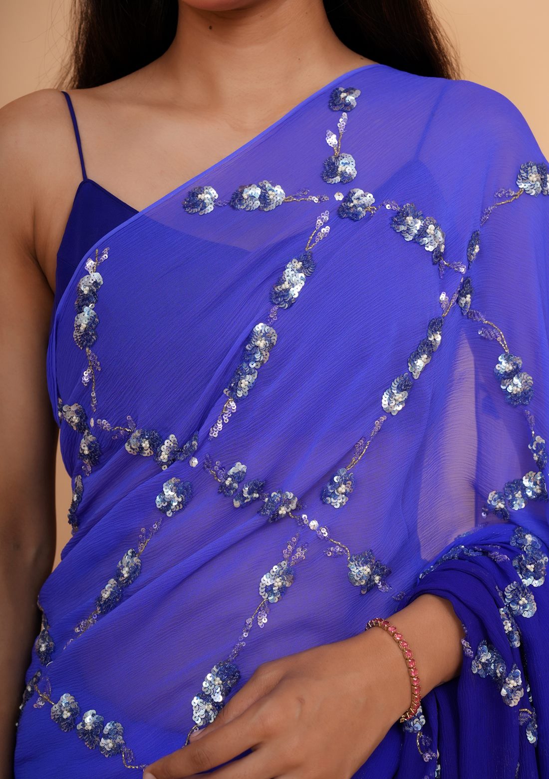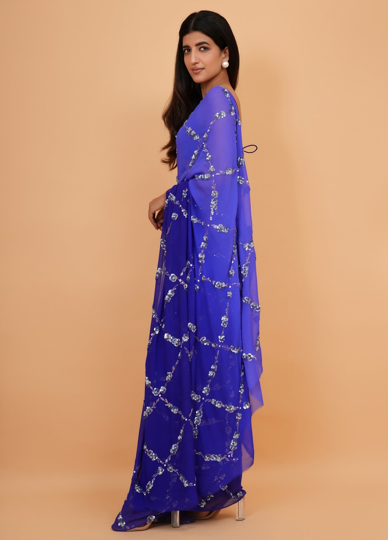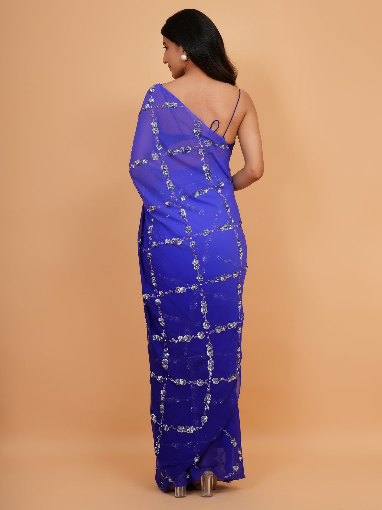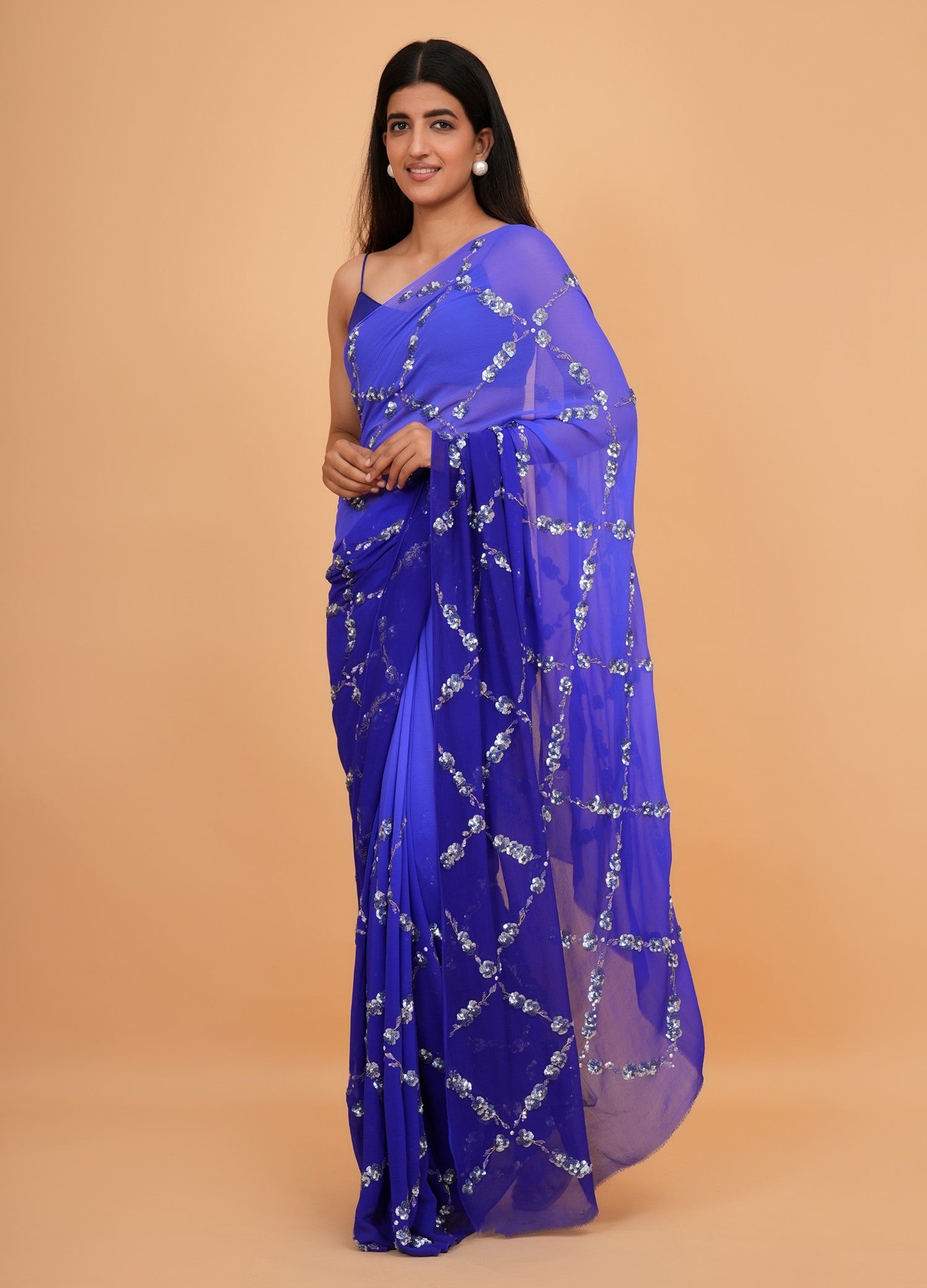 Saree Color : Shaded Blue Saree Fabric : Pure Chiffon Saree Work : Sequine & Cutdana Blouse Color : Blue Blouse Fabric : Crepe Blouse Work : Sequine & Cutdana |