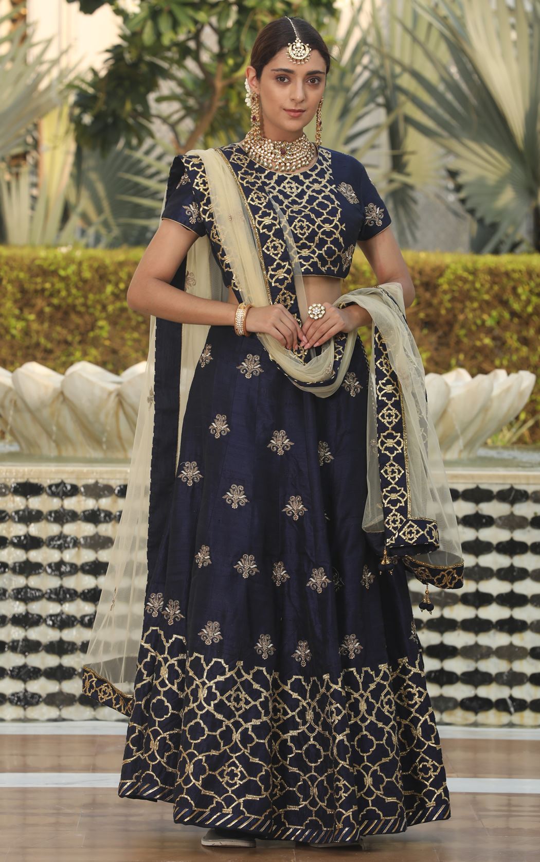 Expertly designed in a stunning blue hue, our Ranas Blue Raw Silk Lehenga combines traditional elegance with modern trends. The intricate sikiya gota work adds a touch of glamour, making it the perfect choice for any special occasion. Elevate your style game with this designer lehenga.