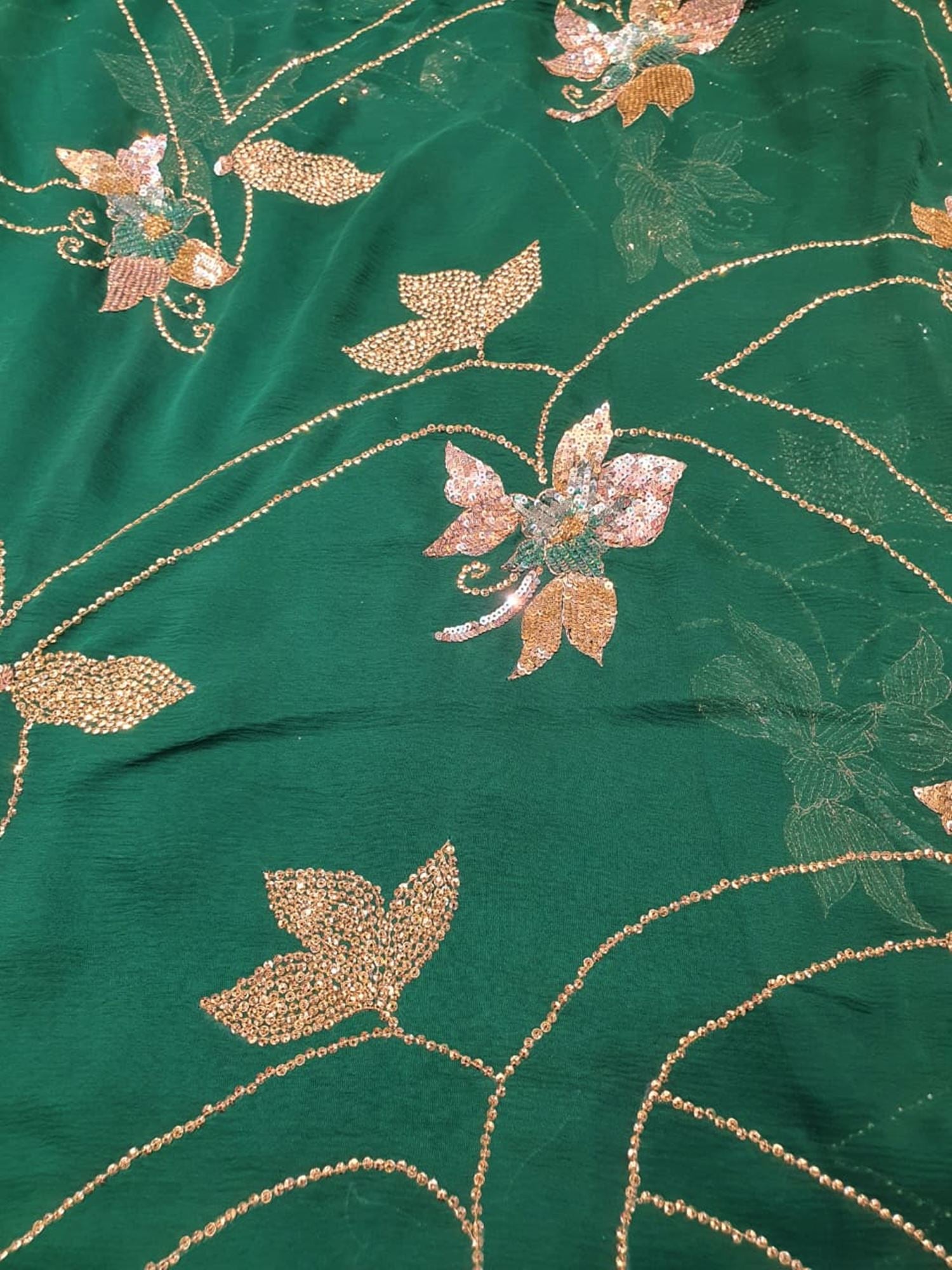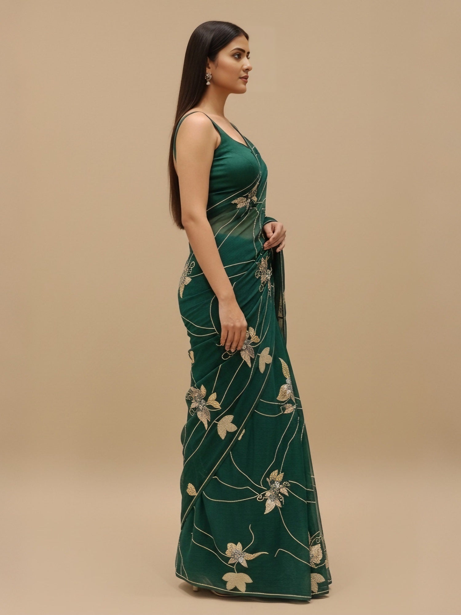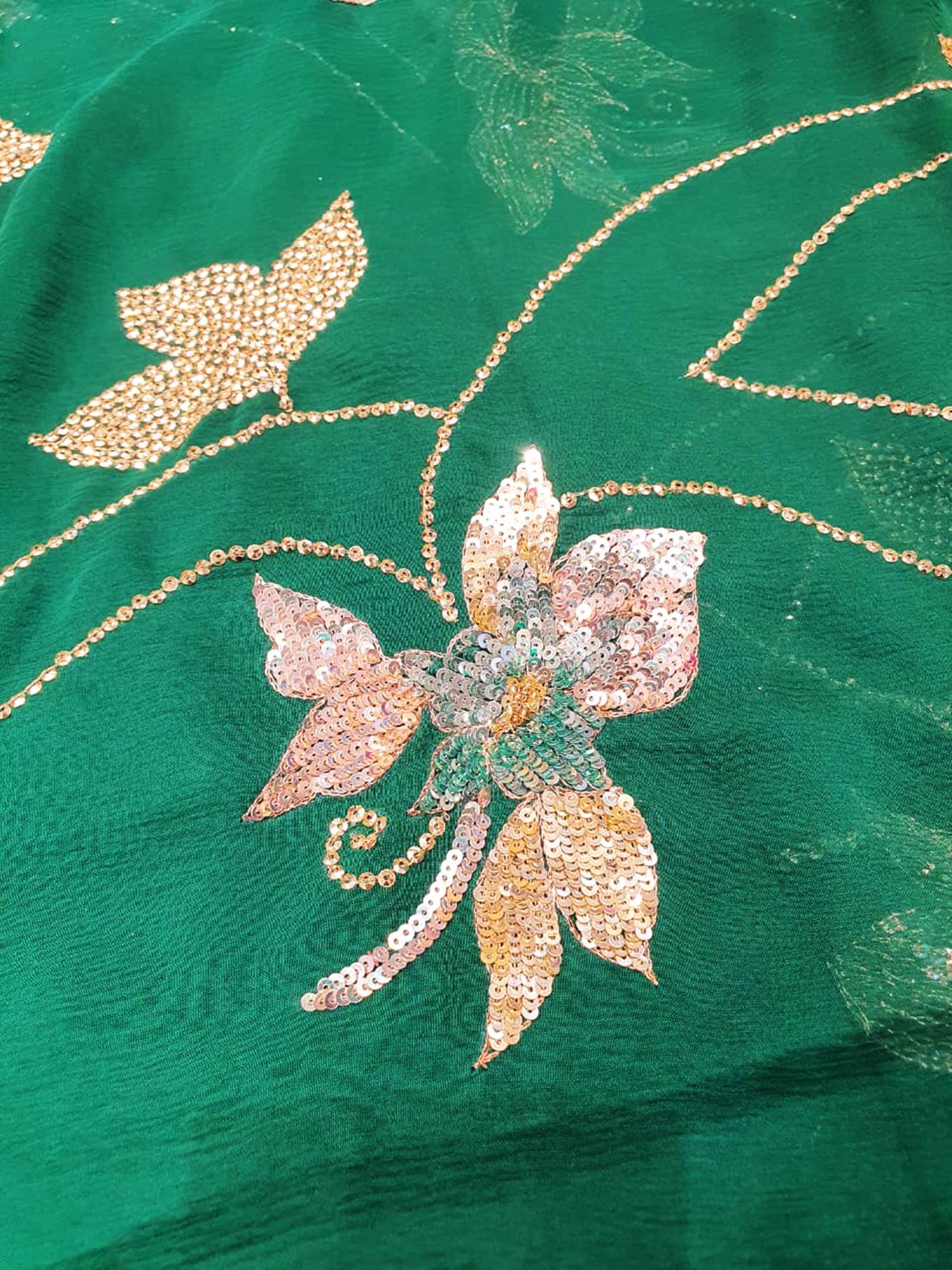 Ranas Bottle Green Sequine Work Saree
