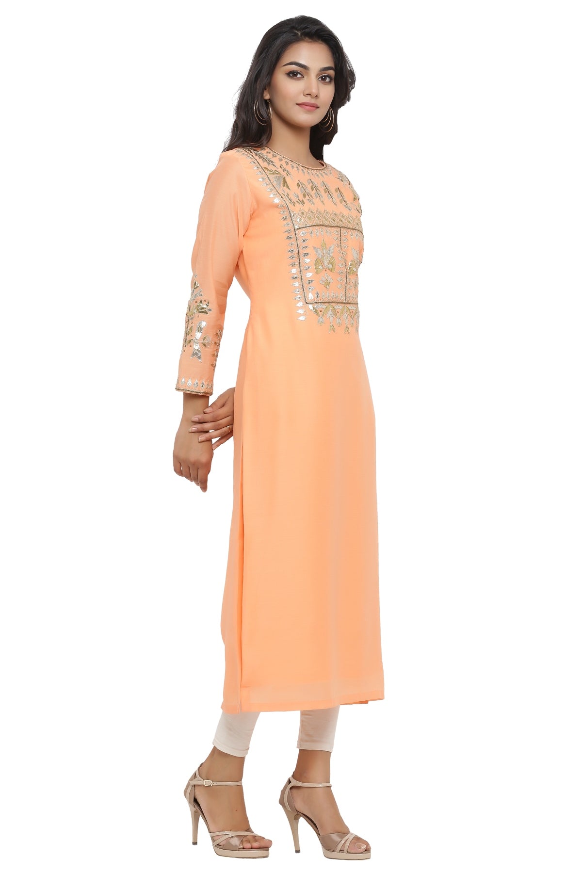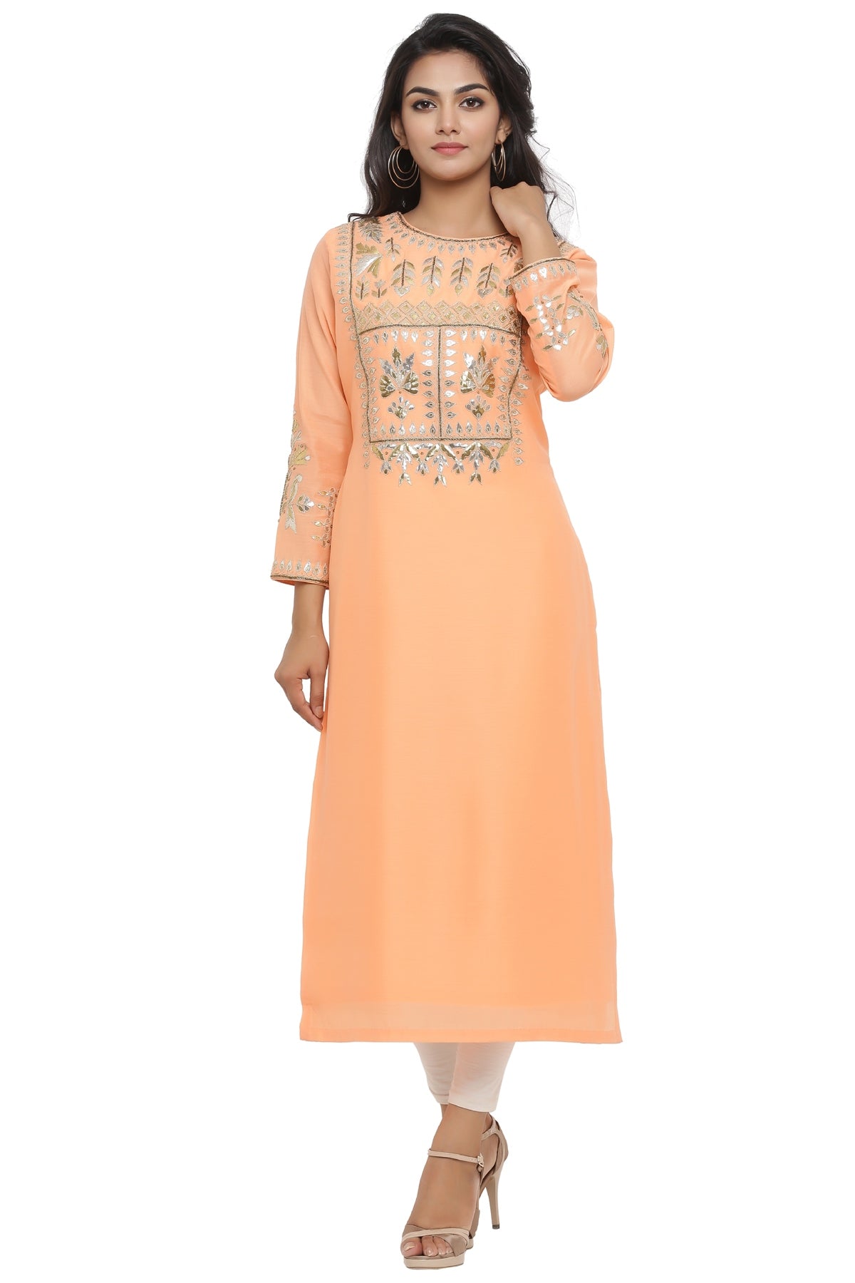 Ranas Dark Peach Chanderi Kurti