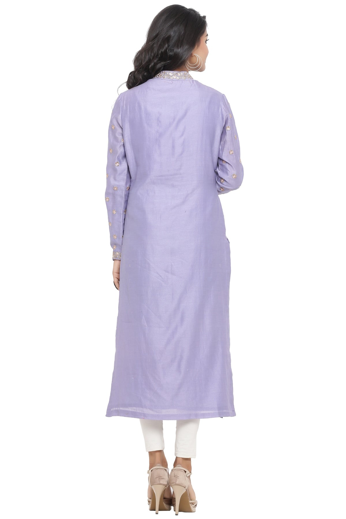 Do not store garments with zari weaving or embroidery in plastics , plastics react with zari and turn the zari dark.
