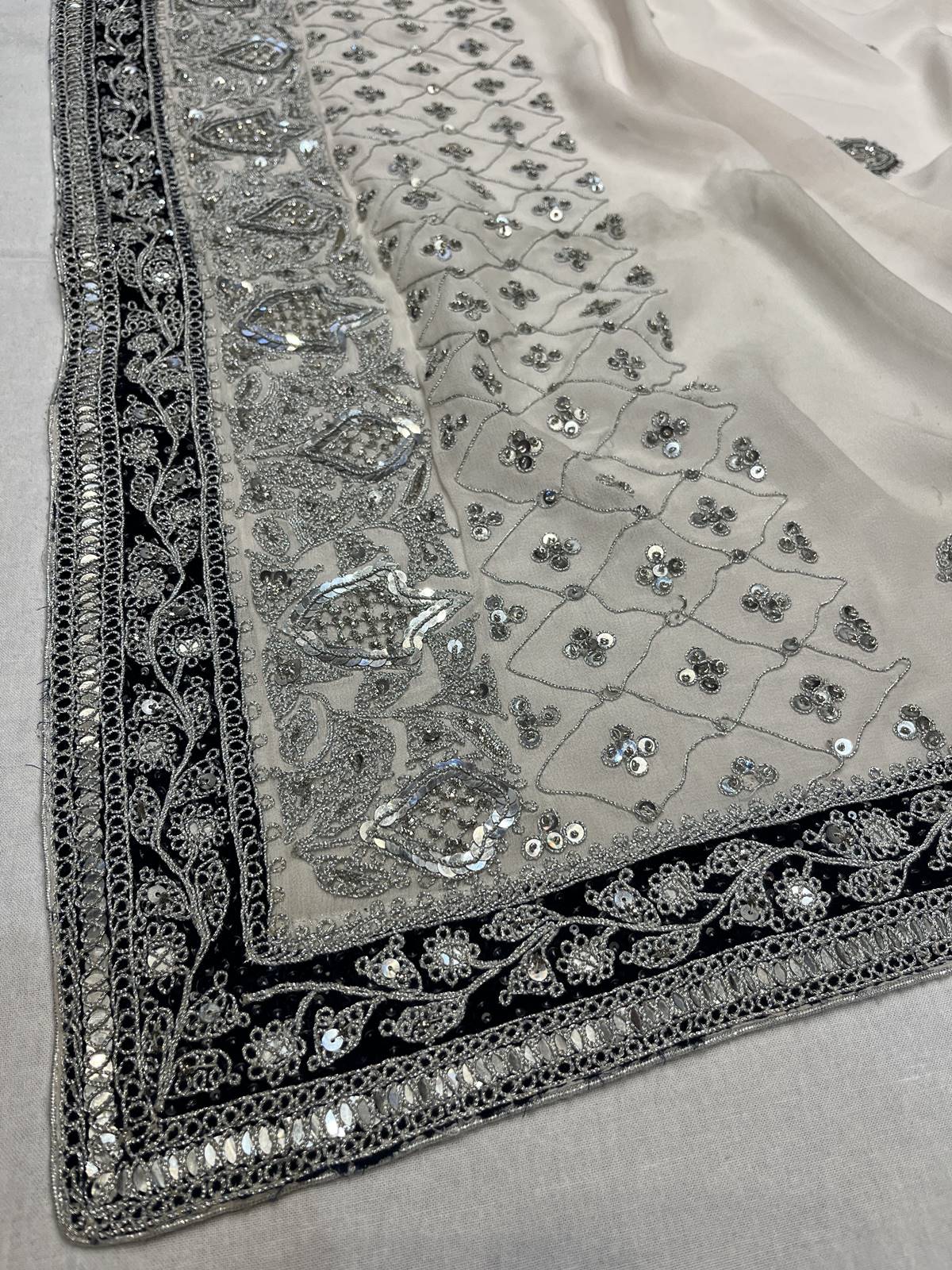 zari may oxidize and change colour if in contact with humid air, they are best protected in cotton covers.