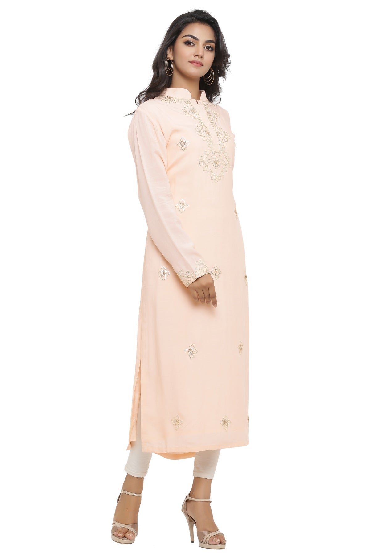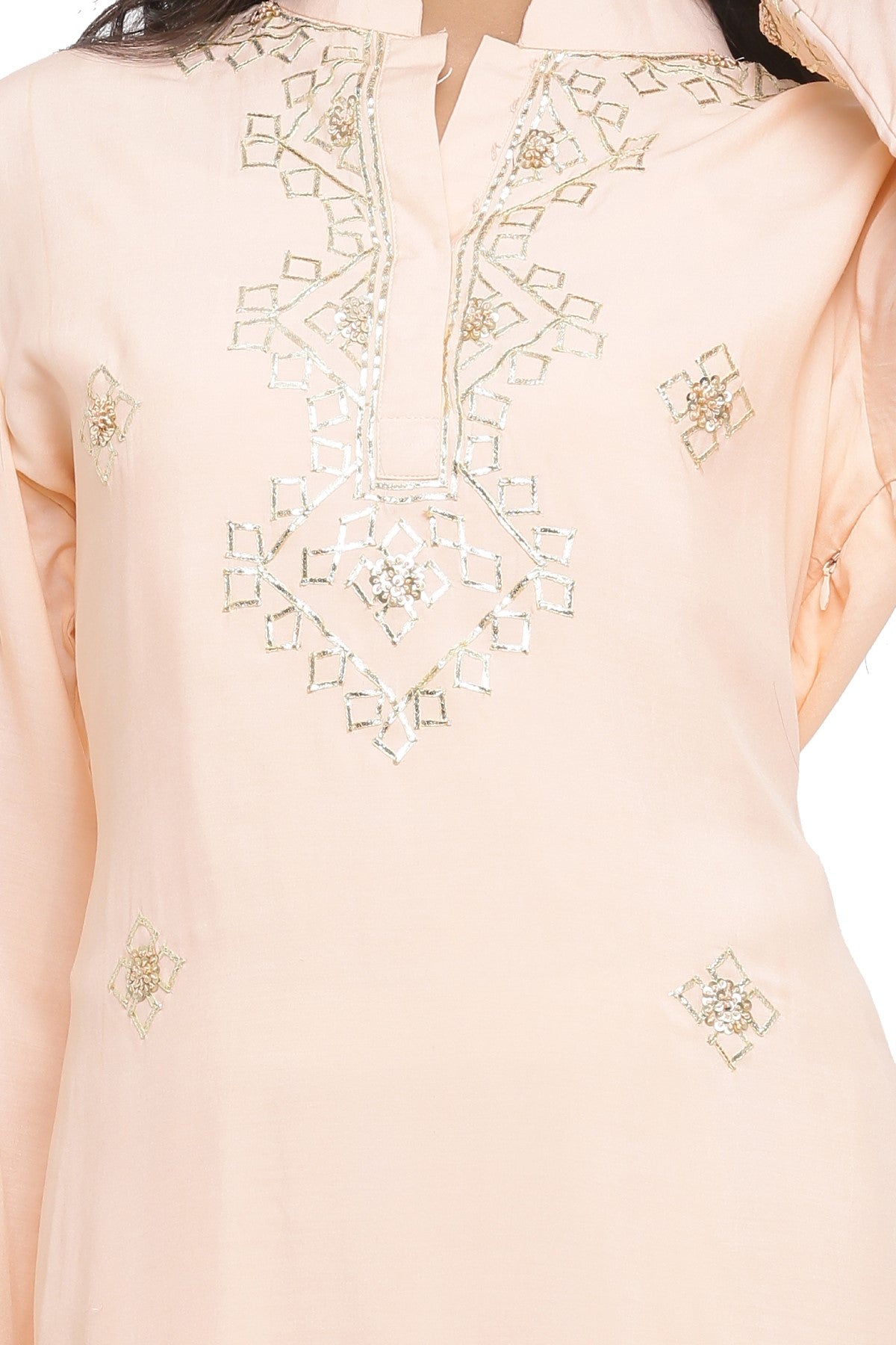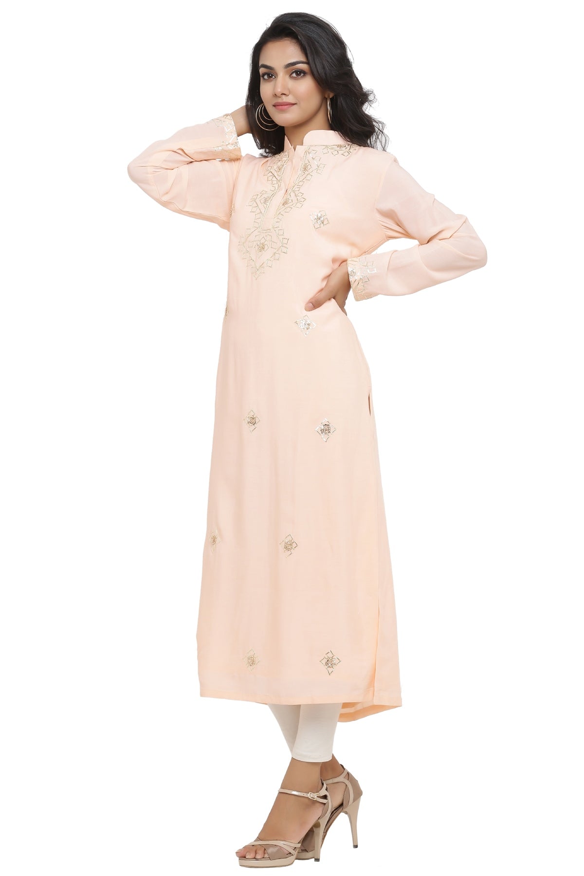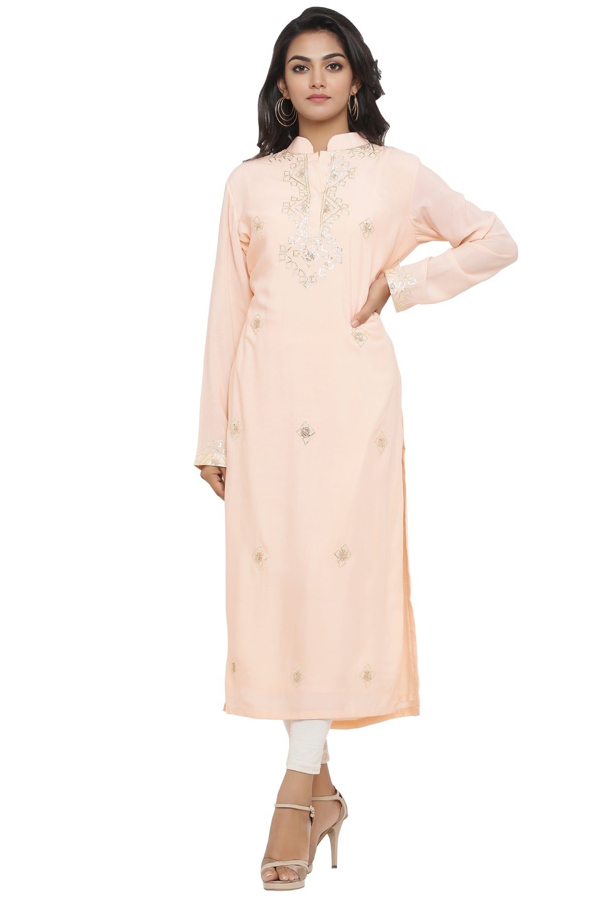 Do not store garments with zari weaving or embroidery in plastics , plastics react with zari and turn the zari dark.