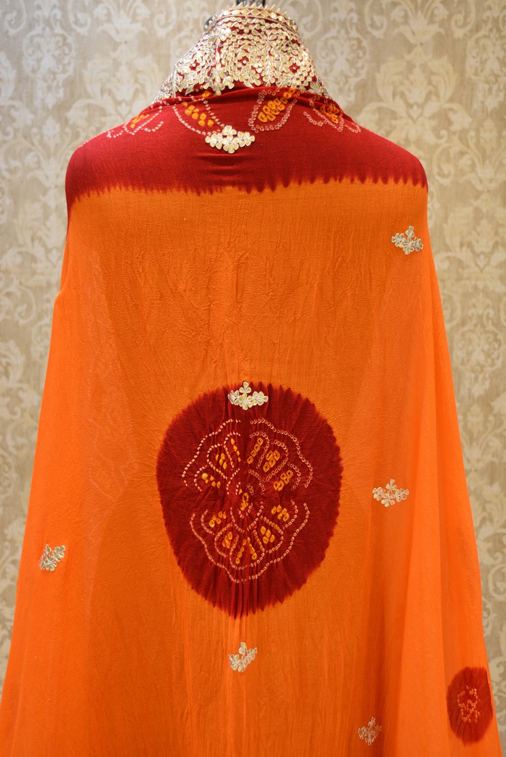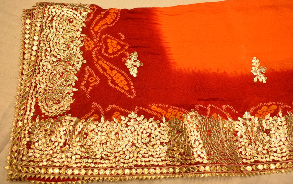 Introducing Ranas Pile Ki Chunri, made from pure chinon fabric and adorned with exquisite gota patti hand work. This traditional piece is perfect for any occasion, adding elegance and sophistication to your wardrobe. Experience the luxurious feel and timeless beauty of this unique fabric.