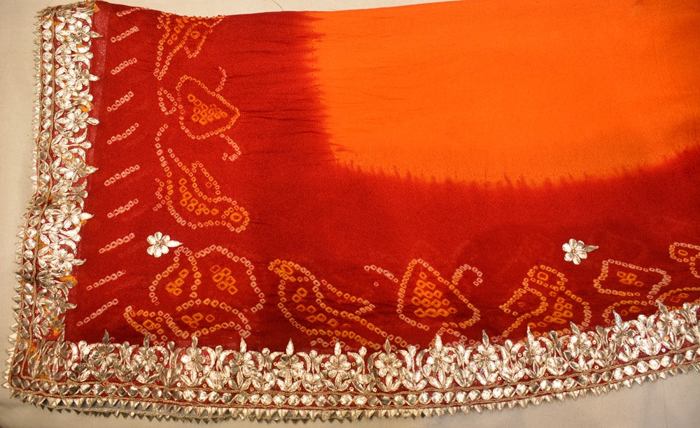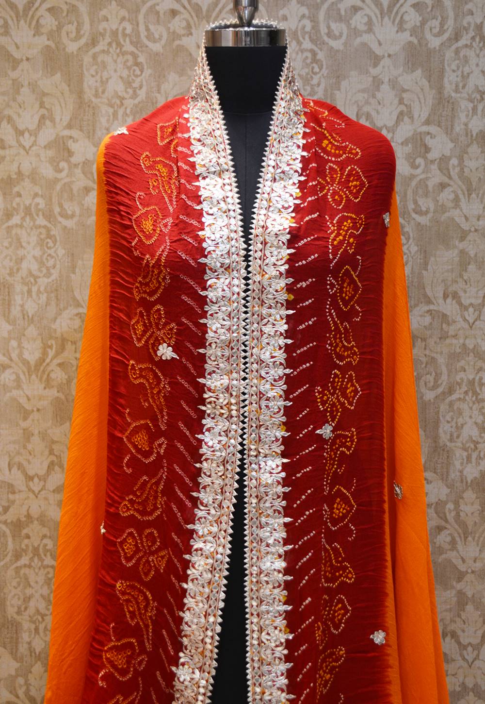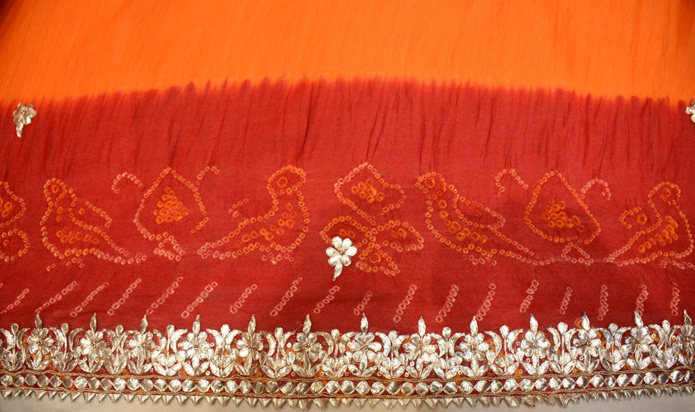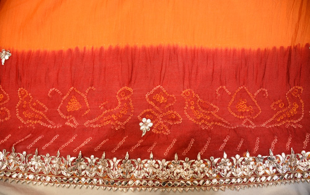 Introducing Ranas Pile Ki Chunri, crafted with exquisite gota patti hand work and pure chinon fabric. Elevate your style with this elegant piece, perfect for any occasion. Experience the luxury and beauty of traditional Indian fashion with our Pile Ki Chunri.