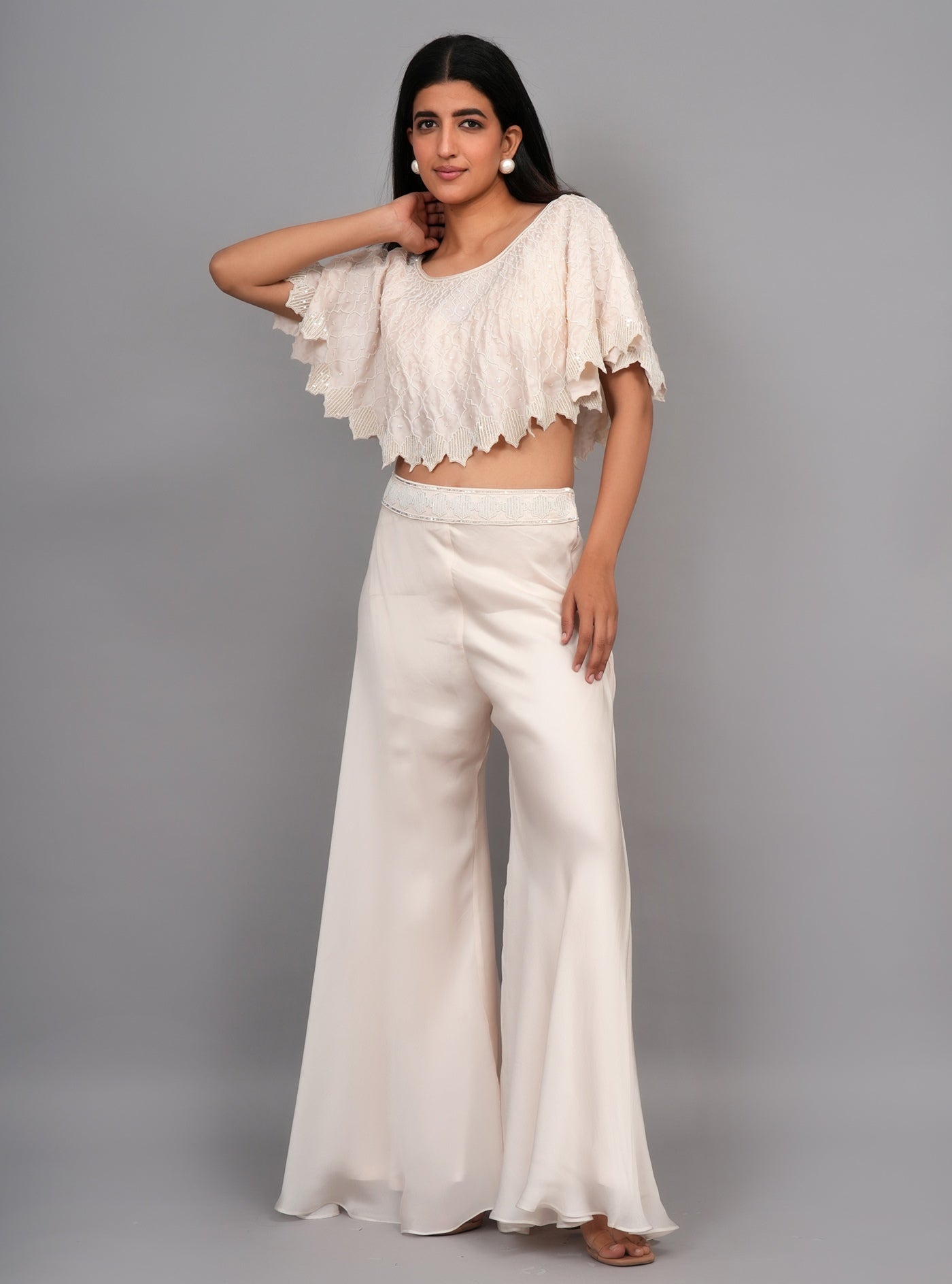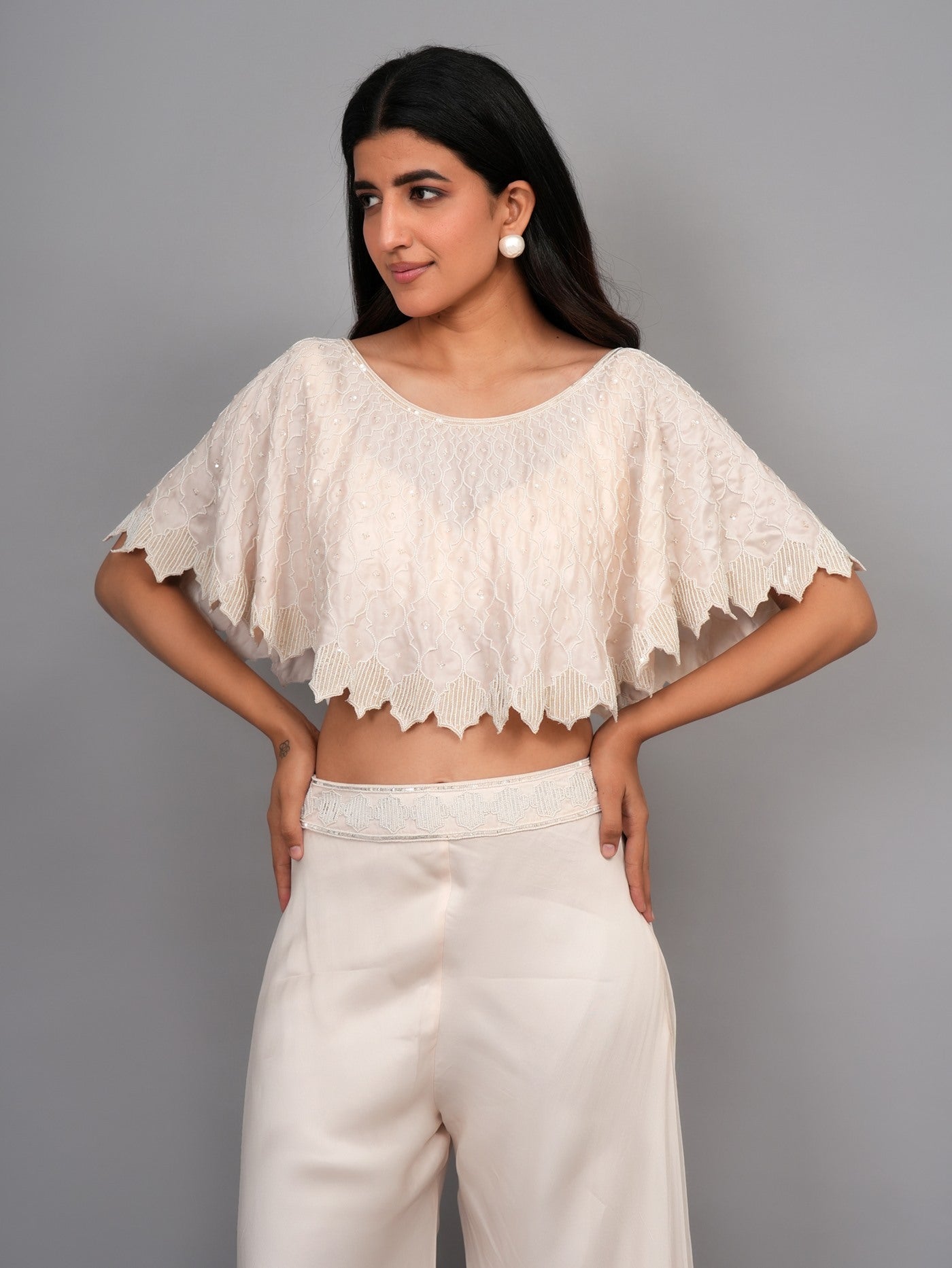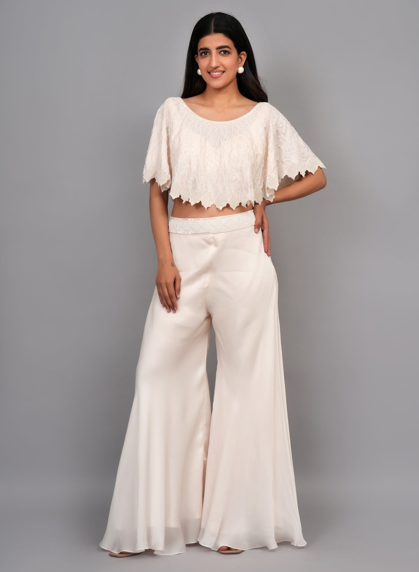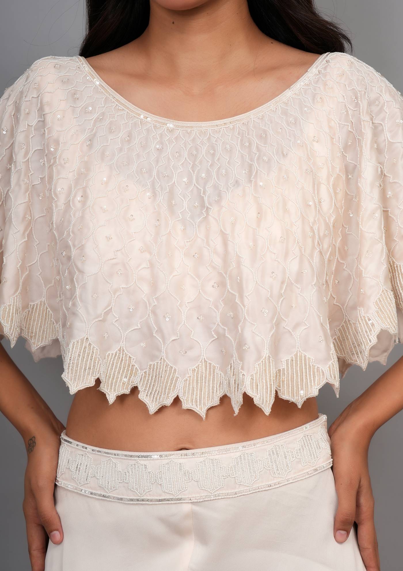 Pochu Color : Off WhiteΒ Pochu Fabric : Satin Silk Pochu Work : Pearl Blouse Color : Off White Blouse Fabric : Satin Silk Bottom Type : Divider Divider Color : Off White Divider Fabric : Satin Silk |