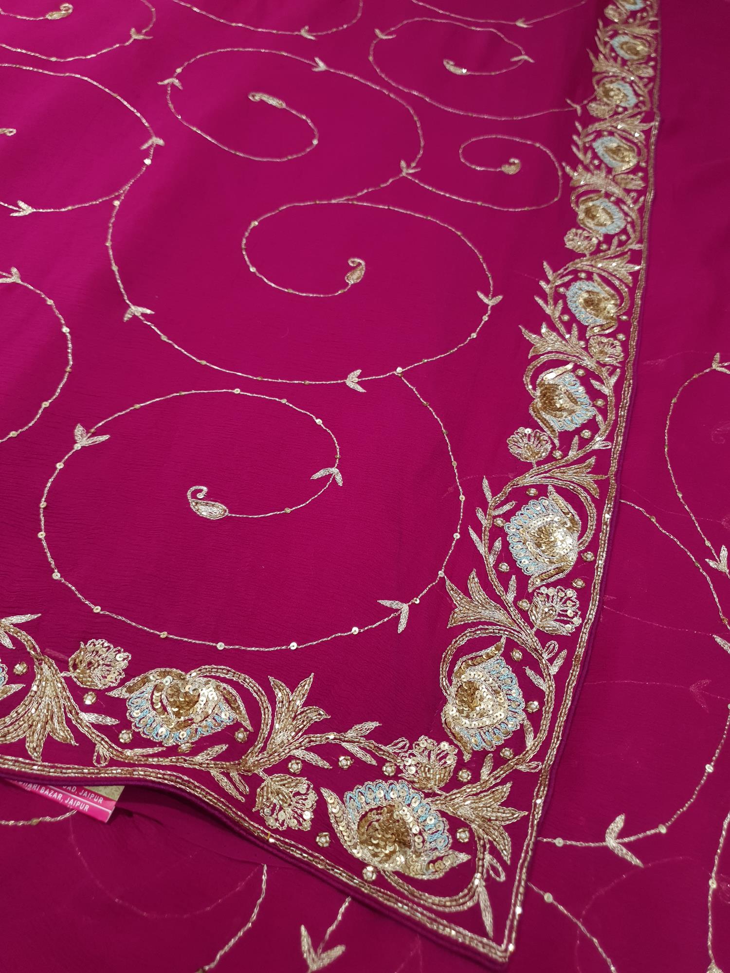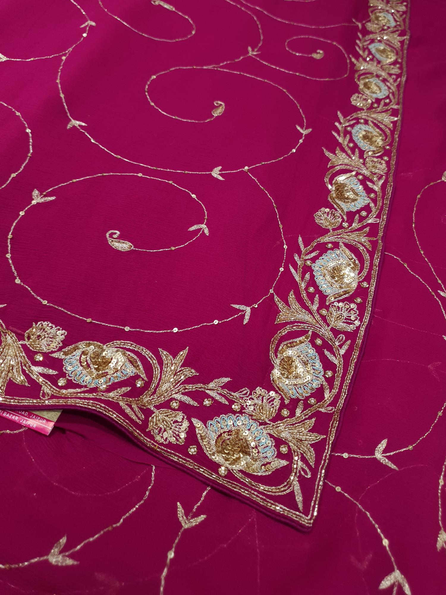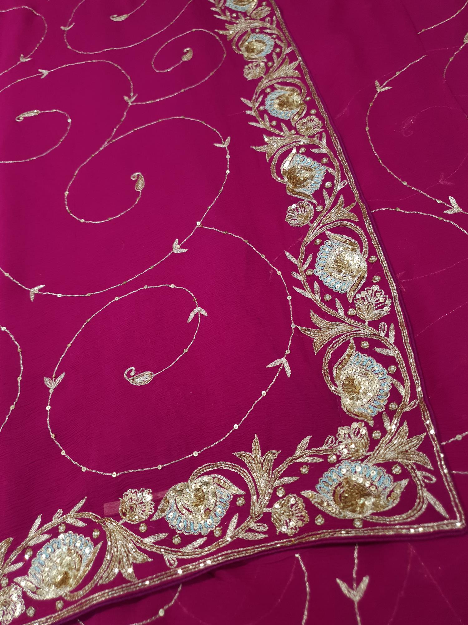 Saree Color : Purple Saree Fabric : Pure Chiffon Saree Work : Aari, Sequine,Cutdana, Resham Blouse Color : Purple Blouse Fabric : Crepe Blouse Work :Β Aari, Sequine,Cutdana, Resham |