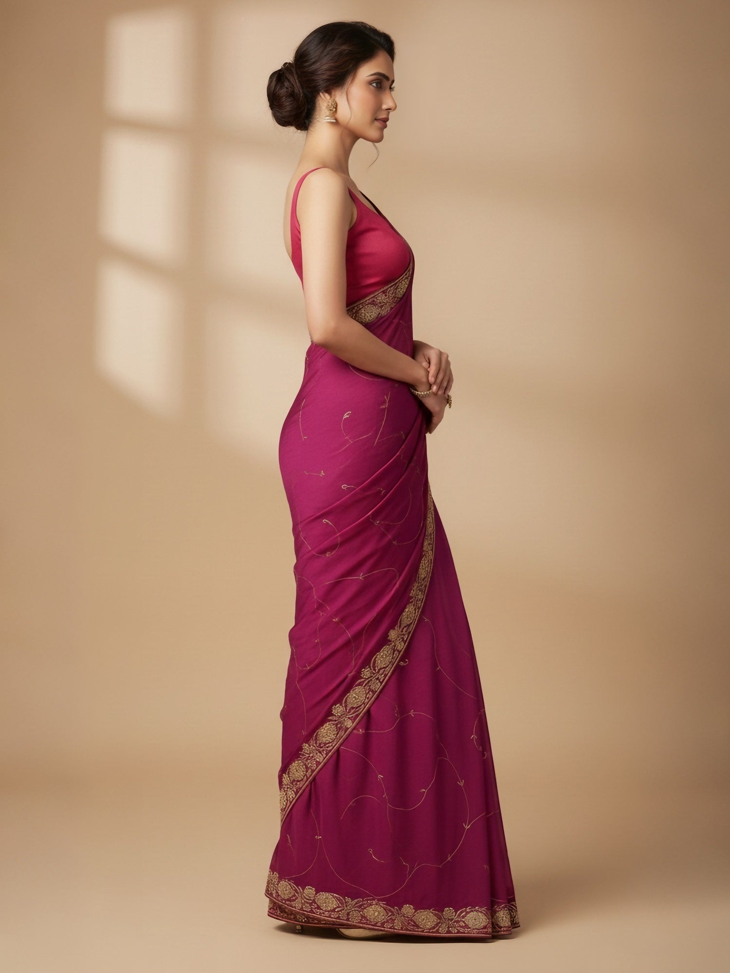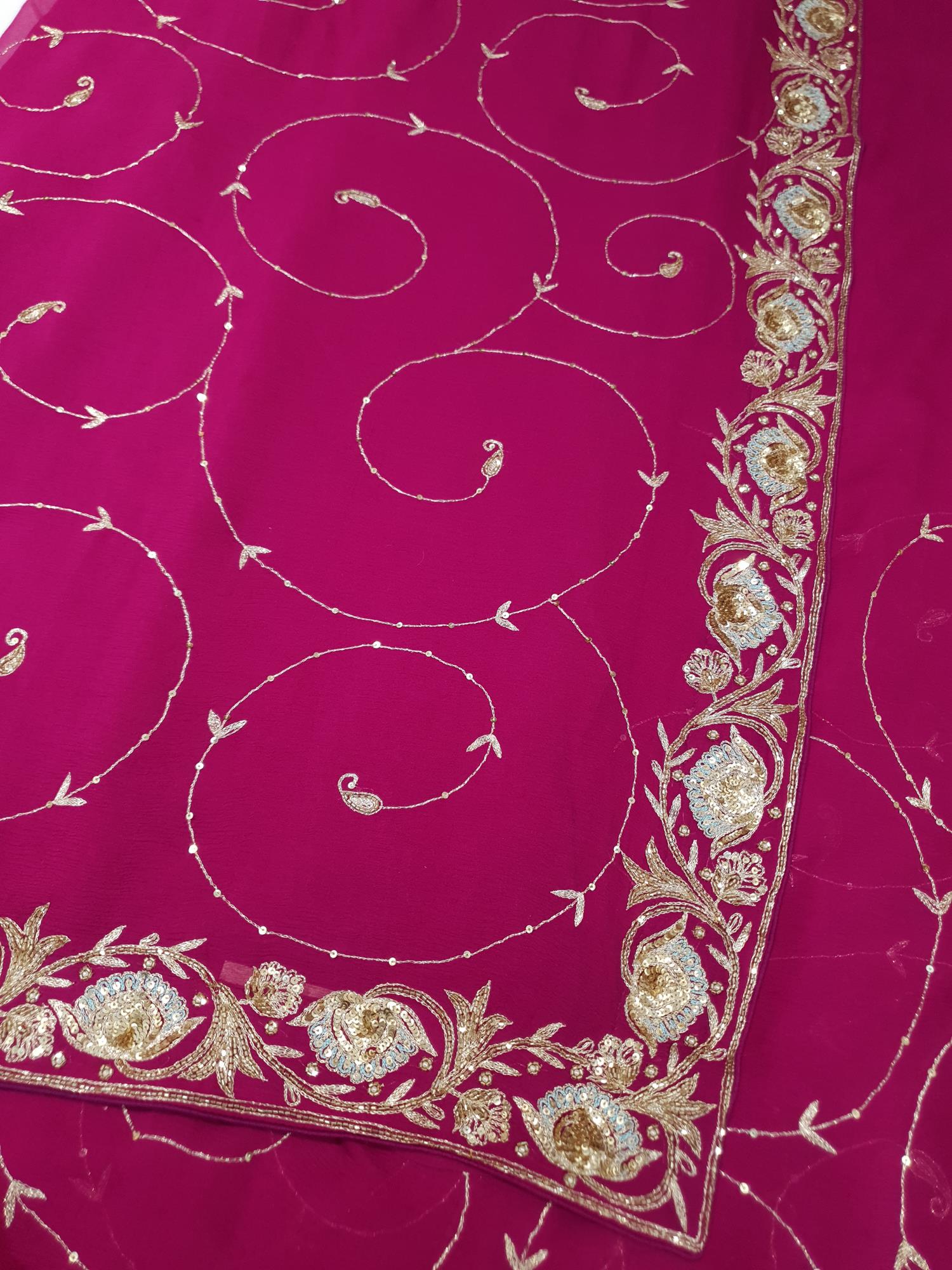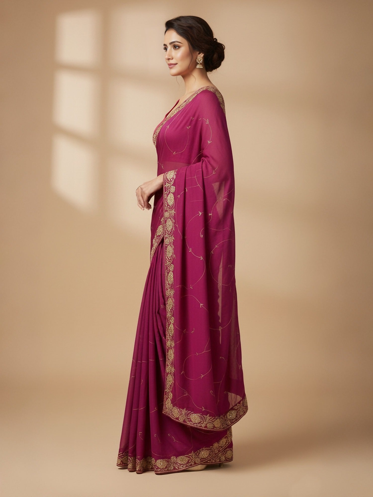Saree Color : Purple Saree Fabric : Pure Chiffon Saree Work : Aari, Sequine,Cutdana, Resham Blouse Color : Purple Blouse Fabric : Crepe Blouse Work :Β Aari, Sequine,Cutdana, Resham |