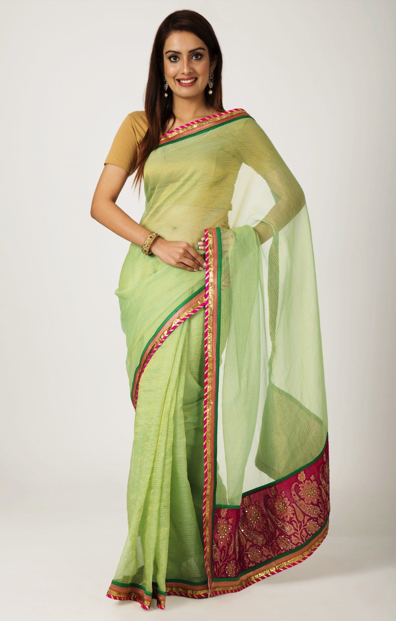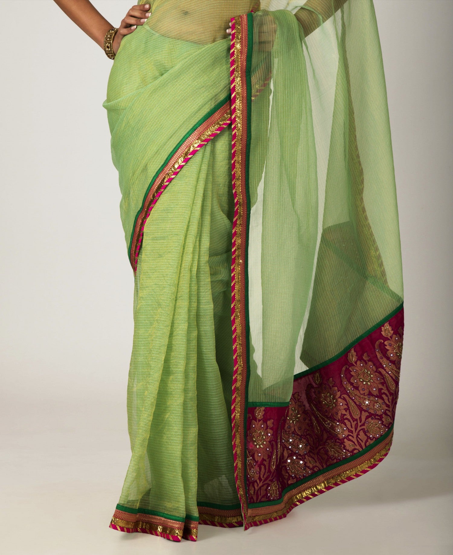 Ranas Rama Green Zari Kota Tissu Cutdana mirror Work Saree