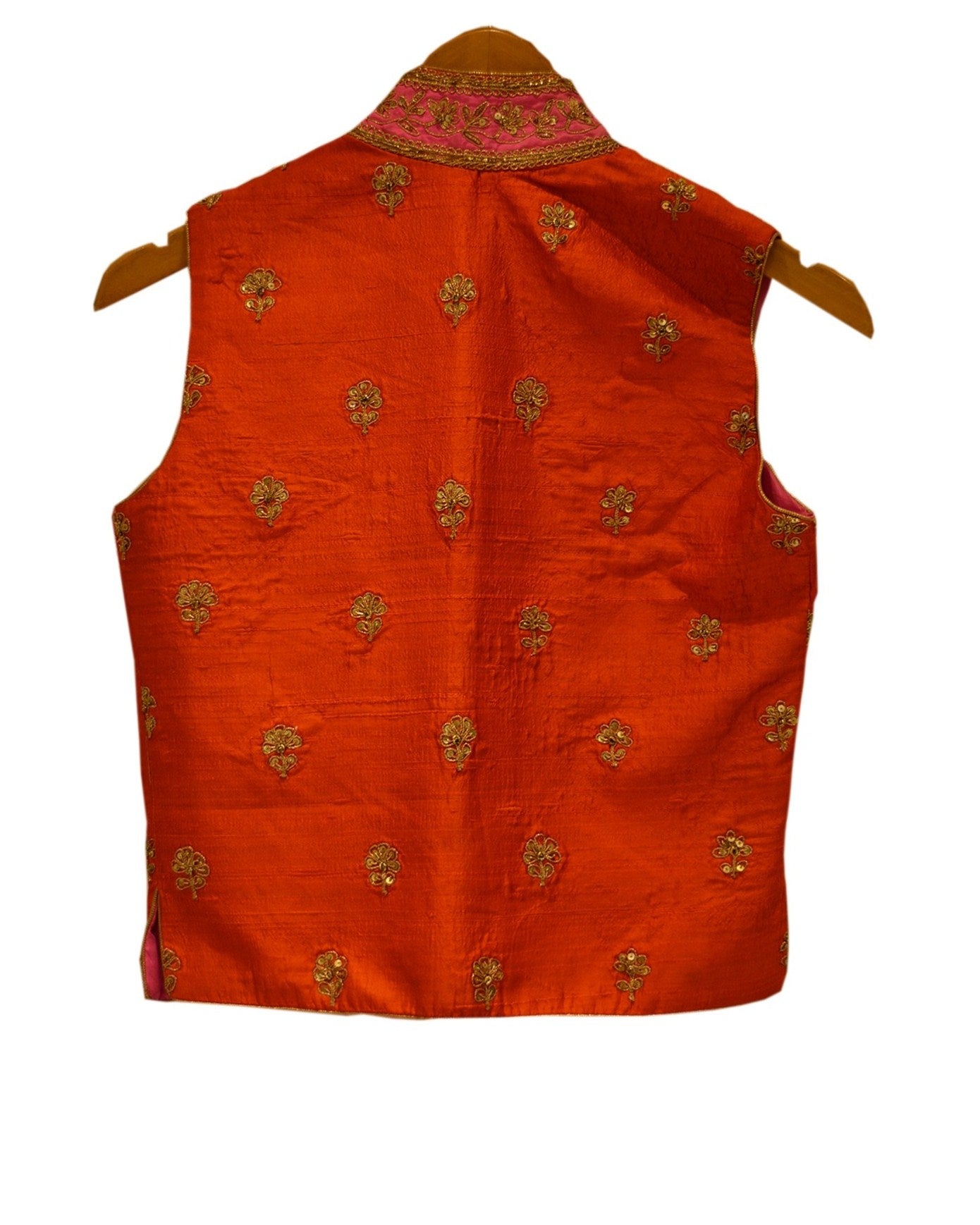 Do not store garments with zari weaving or embroidery in plastics , plastics react with zari and turn the zari dark.
