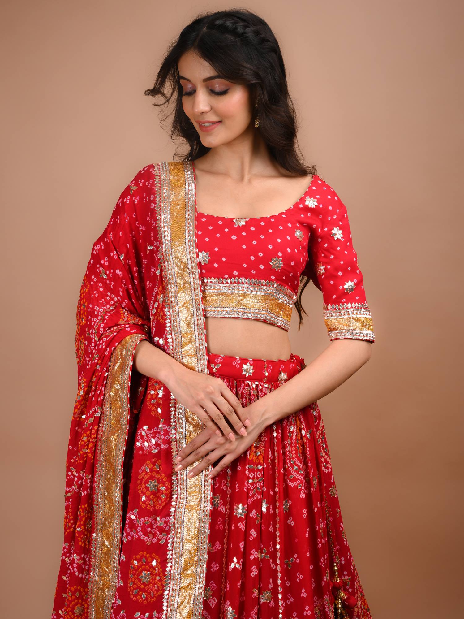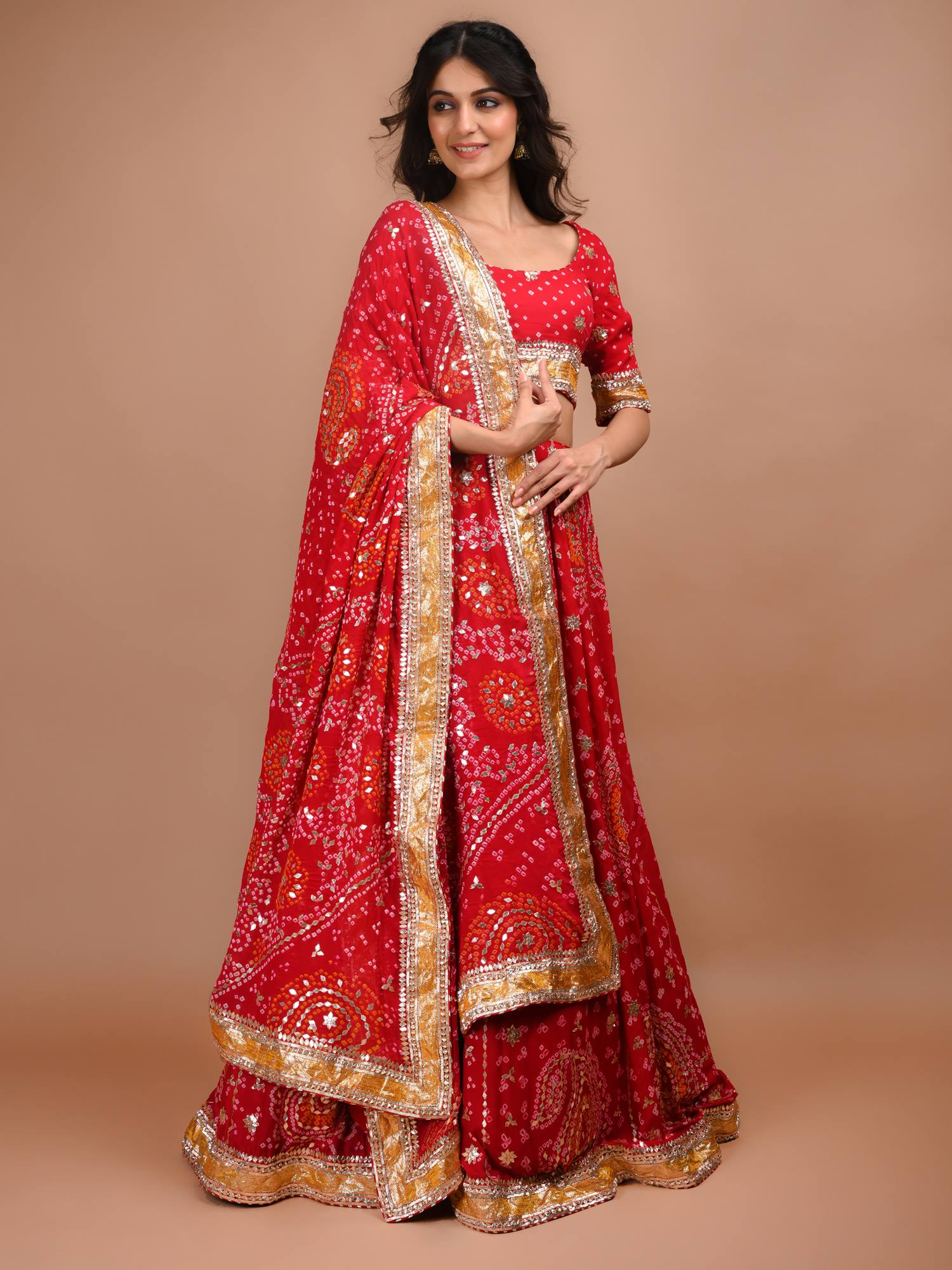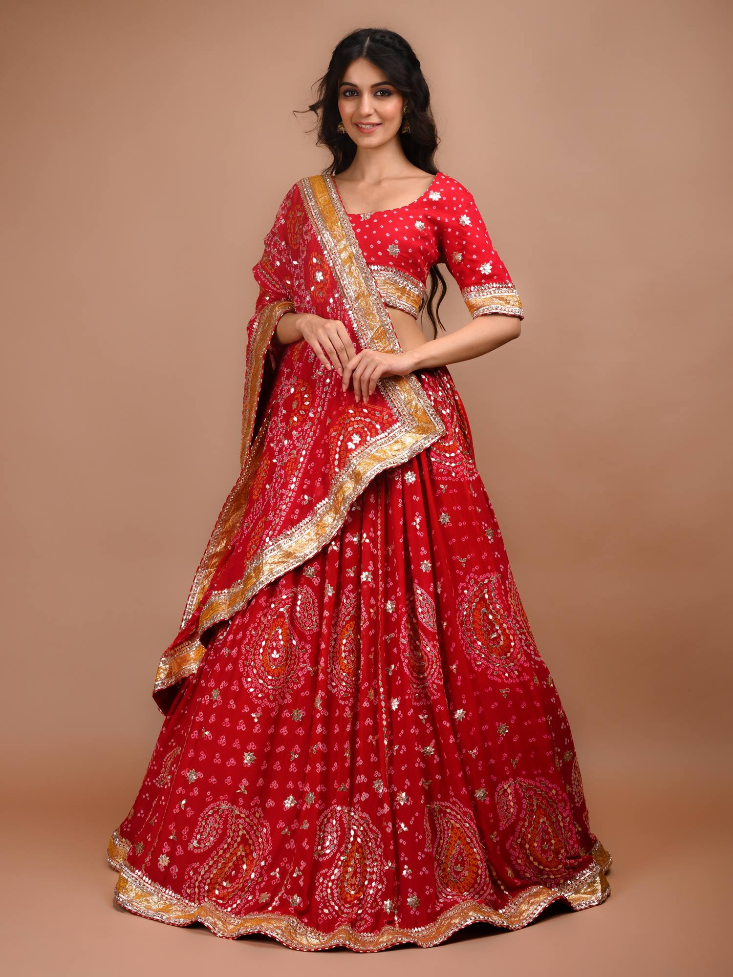 Ranas Red Bandhej Lehenga