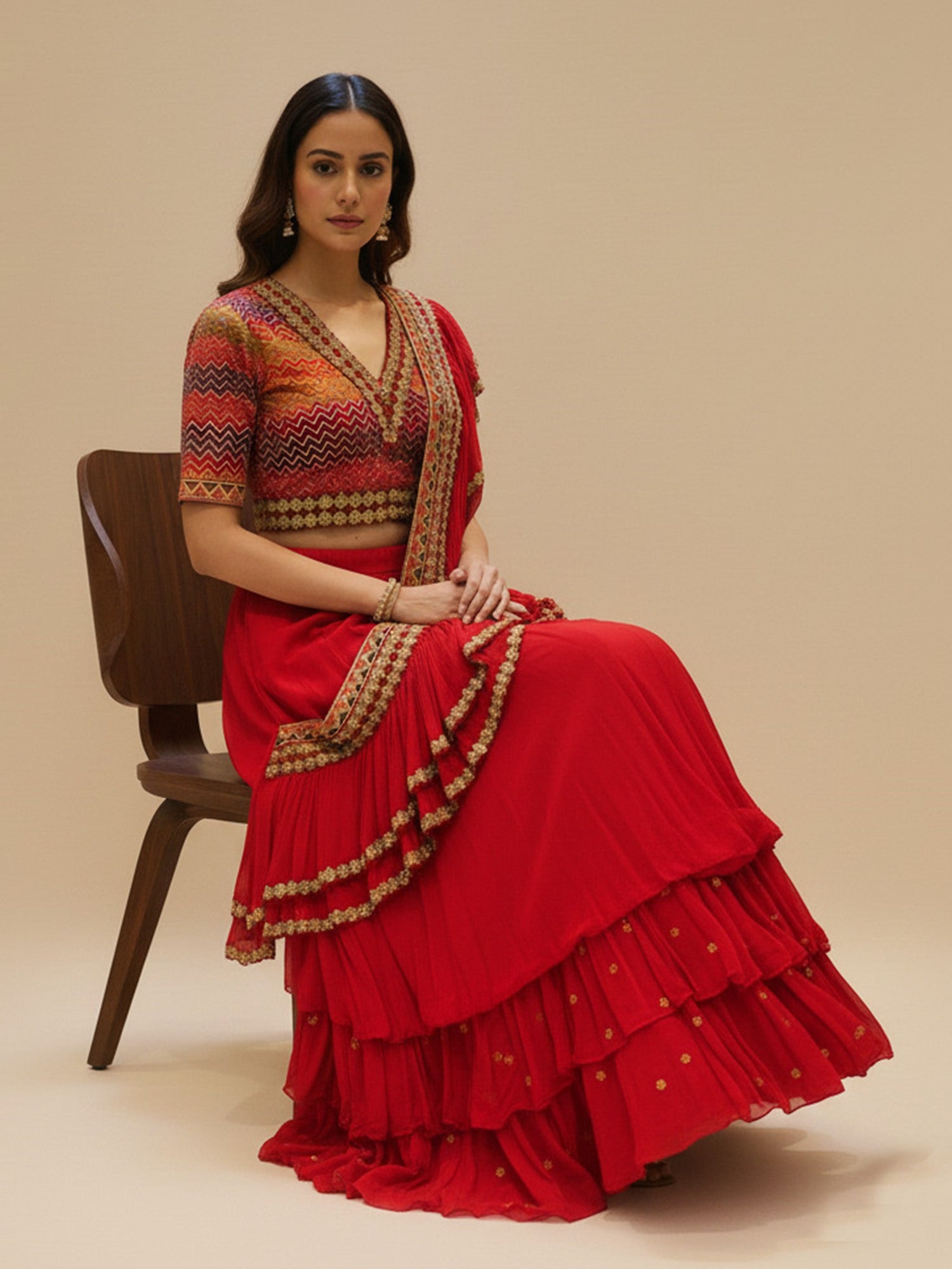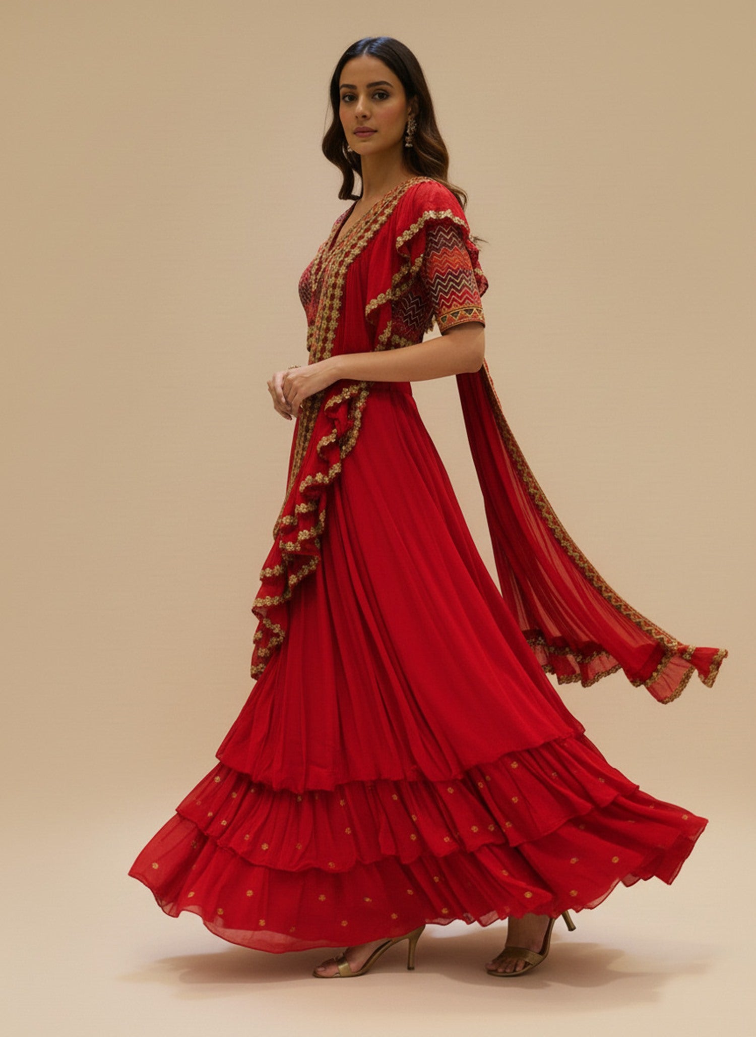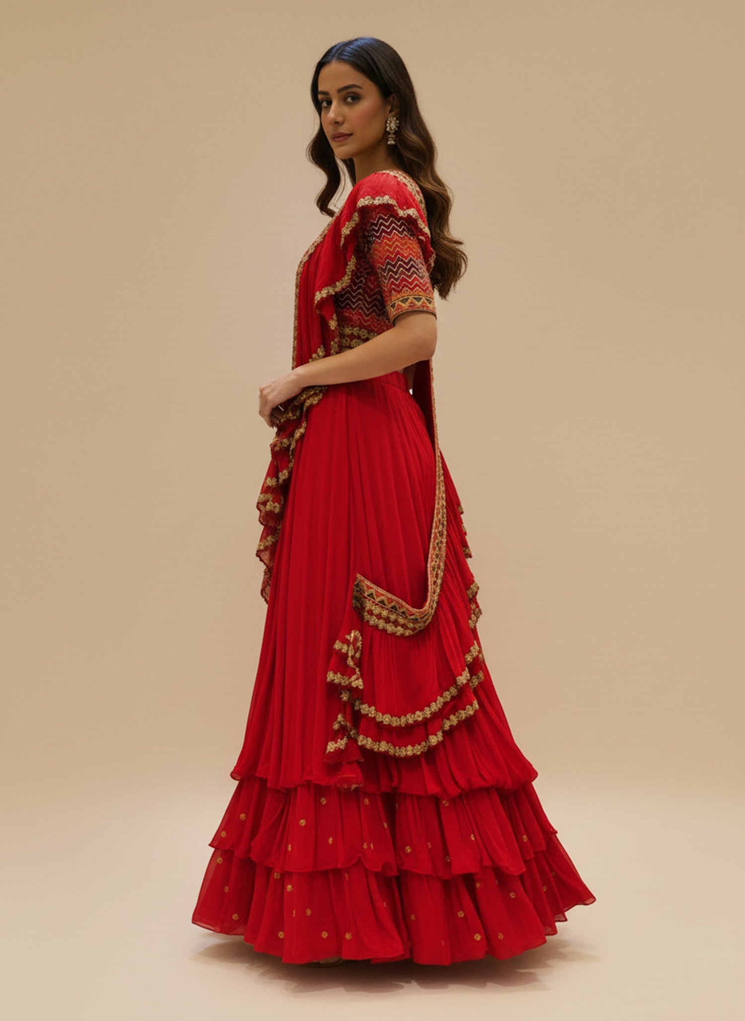 Elevate your festive wardrobe with the Ranas Red Color Designer Lehenga, crafted for special occasions and parties. Its vibrant red hue exudes confidence and traditional charm, while the intricate design adds an elegant, contemporary flair. Perfectly tailored to enhance your silhouette, this lehenga offers a comfortable yet striking option for celebratory events.